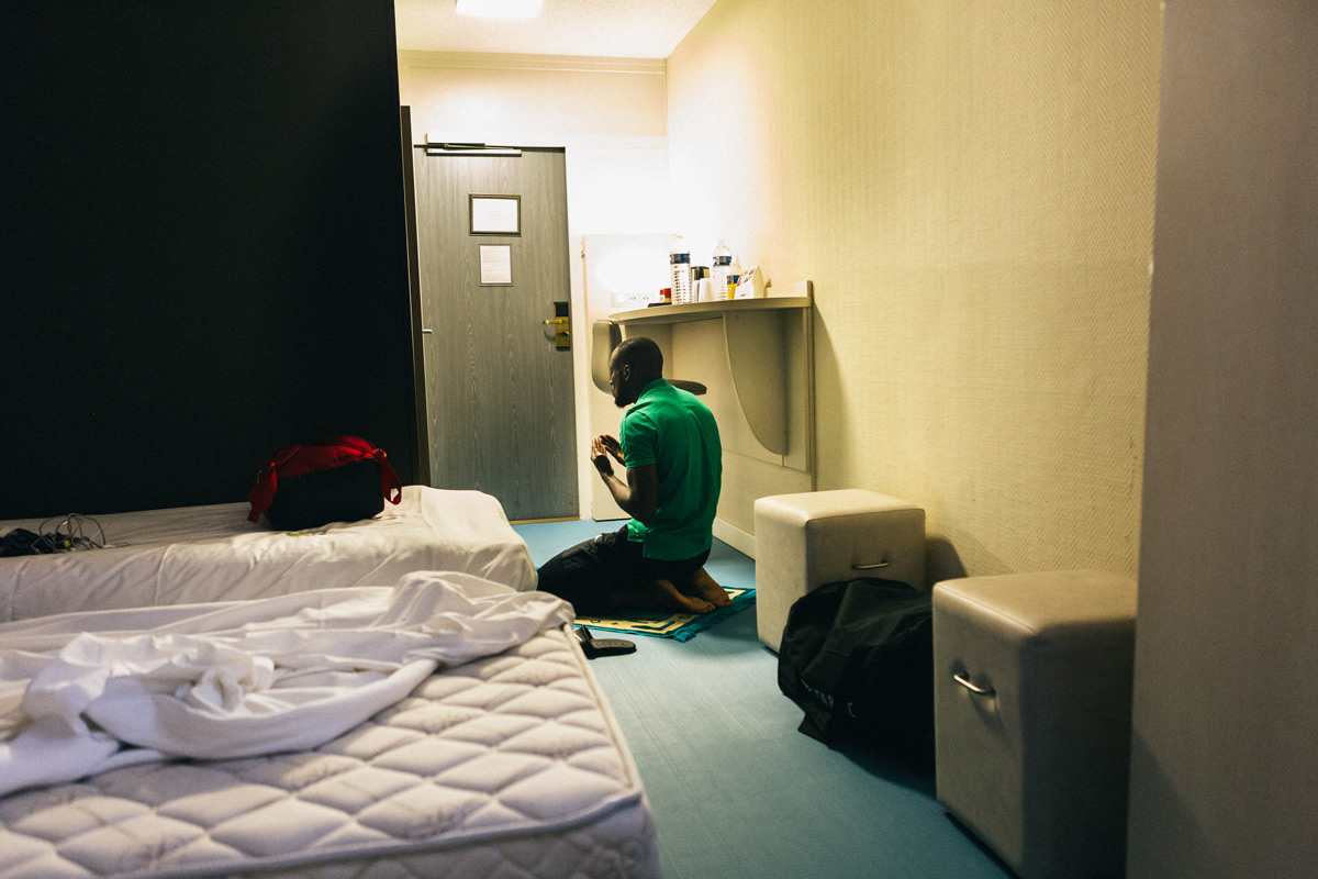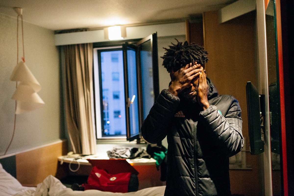Abdoulaye Sané dans sa chambre d'hôtel la veille du match.